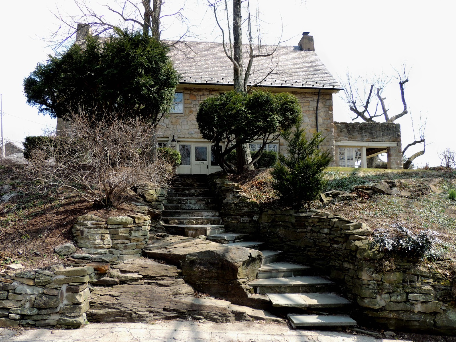 Rockledge, built in 1910, isn't very visible from the road. You have to sort of brazenly balance on some rocks across the street (which belong to 584, another Scheibler house!) while holding tight to your Beagle.